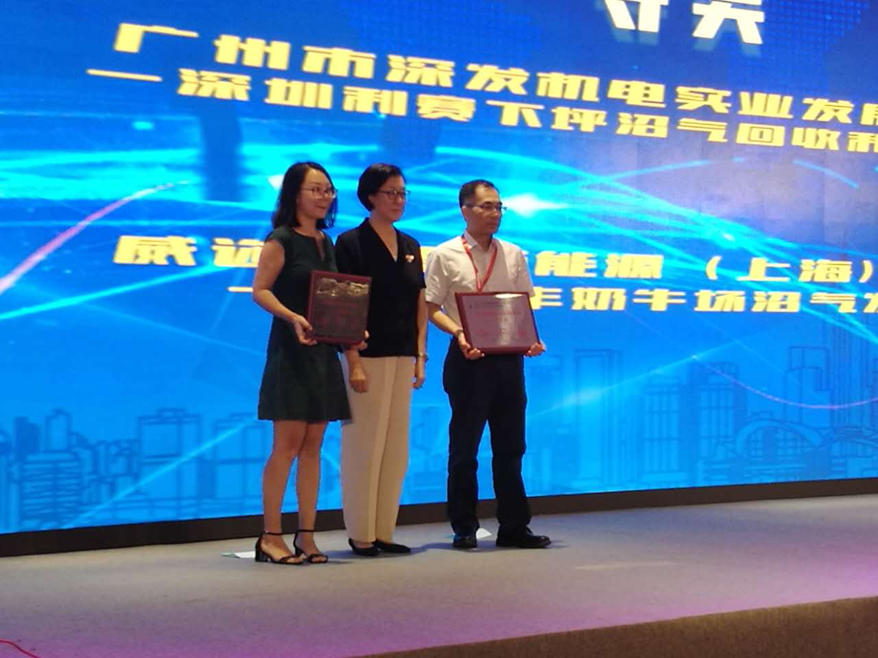 優(yōu)秀項目獎(生物質(zhì)):廣州市深發(fā)機(jī)電圣潔發(fā)展有限公司-深圳利賽下坪沼氣回收利用發(fā)電項目、威邇徠德新能源(上海)有限公司-鹽城大豐奶牛場沼氣發(fā)電項目