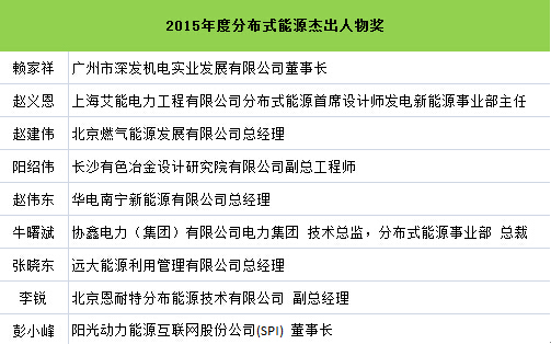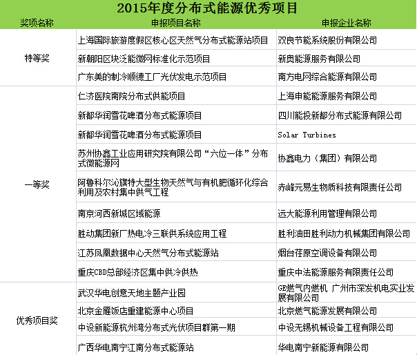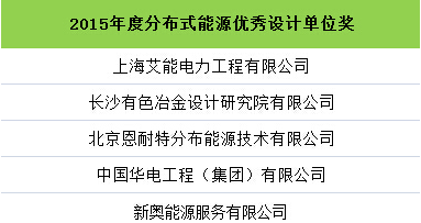 為肯定和表彰本年度在中國分布式能源領域做出突出貢獻的企業(yè)與個人,由中國能源網發(fā)起、會議主辦方大力支持的“2015(第十一屆)分布式能源國際論壇獎項評選”活動結果在會議期間正式公布。獎項分為:2015年度中國分布式能源優(yōu)秀項目獎、優(yōu)秀設計單位獎、杰出貢獻人物獎。