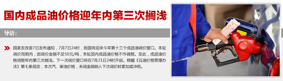 2017年7月7日24時(shí)調(diào)價(jià)金額不足50元/噸,國(guó)內(nèi)成品油價(jià)格不作調(diào)整